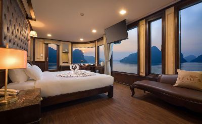 17:00 Return to Orchid Cruises. Guests may join a cooking class, take a swim at the untouched area, or enjoy the Happy Hour (buy 1 get 1) at the bar while watching the magnificent sunset over the Gulf of Tonkin.